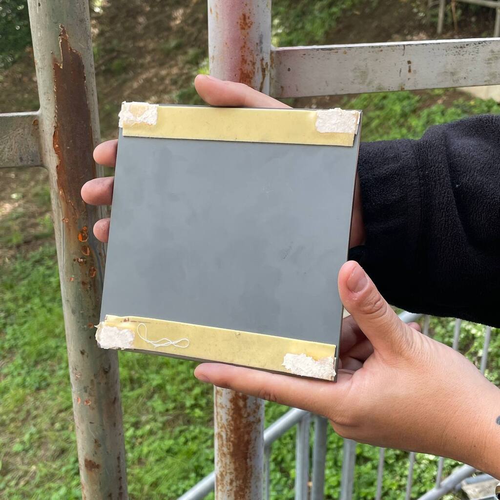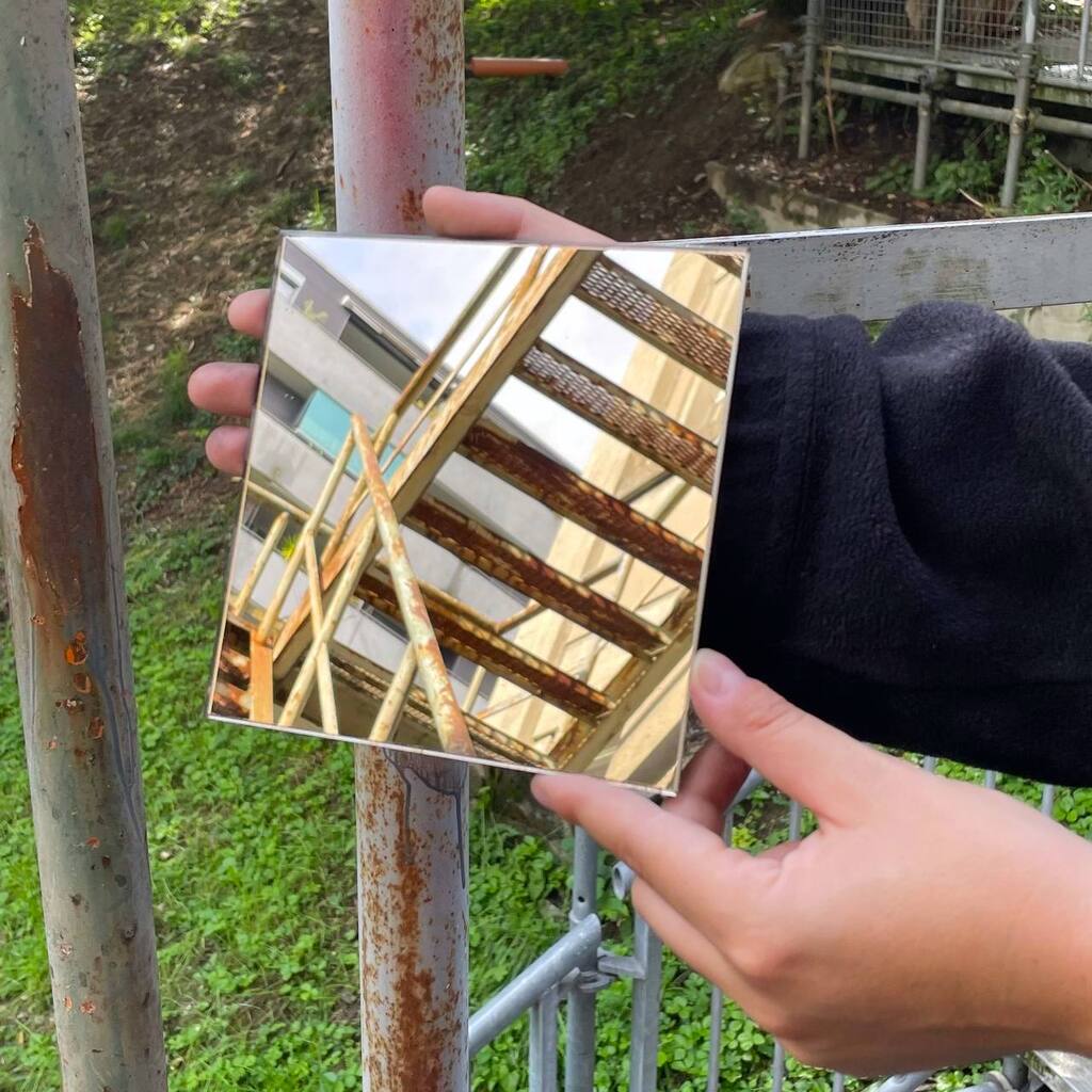 AutreMiroir carré de 15 x 15 centimètres. Deux bandes adhésives au dos. Bon état général.