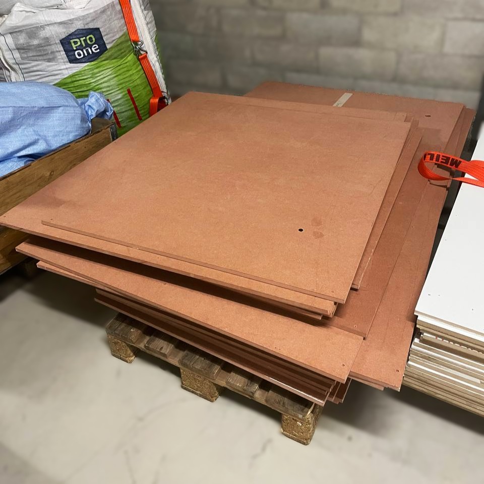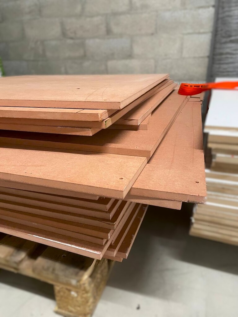 Bois » ComposéPalette de panneaux MDF épaisseur 16mm peint en blanc.