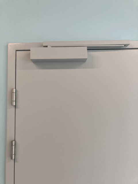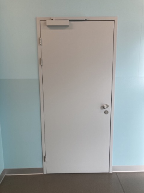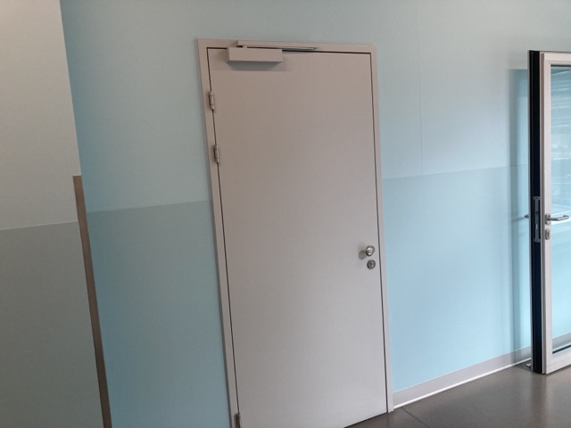 Porte métallique grise Cadre, faux-cadre, embrasure Panneau affleuré Ferrements Glutz Ferme-porte Dorma