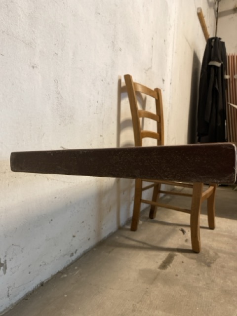 Bois » FeuillusPlateau d’acajou qui servait à l’origine de banc. Ils sont biseautés (non plat) et en forme arrondie.