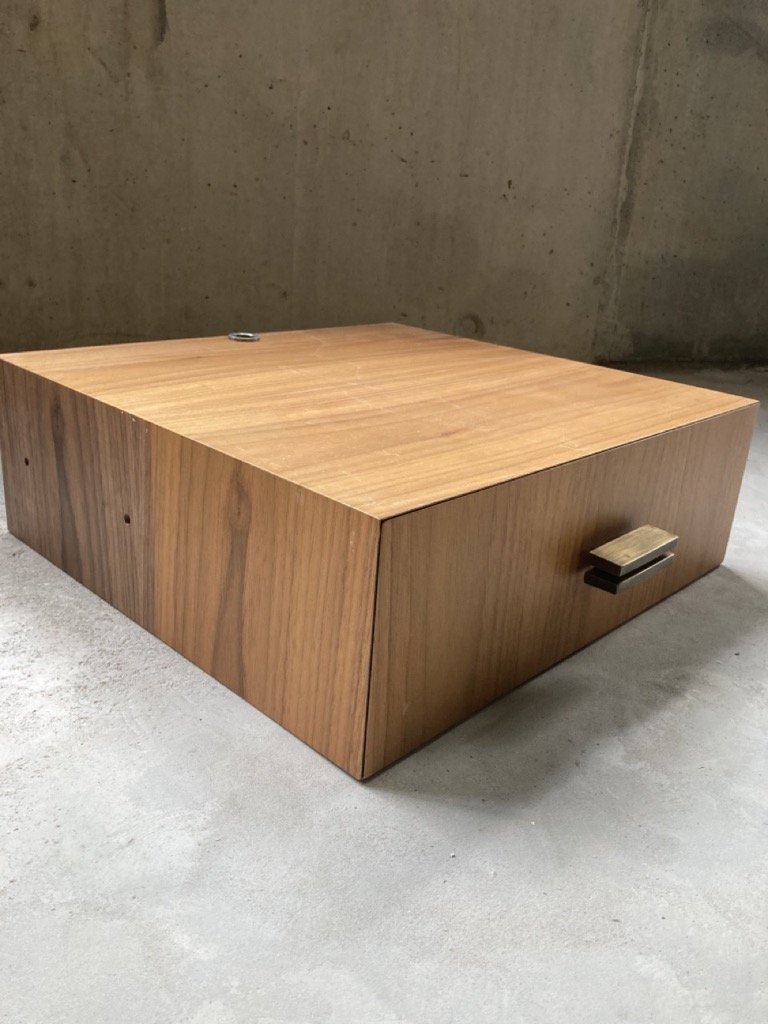 Table de chevet murale. Un tiroir complet avec glissière amortie, finition noyer.