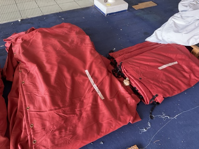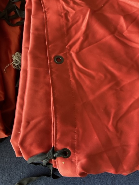Rideaux de théâtres satinés rouge de 7m x 12m. 5 chf/m2 !