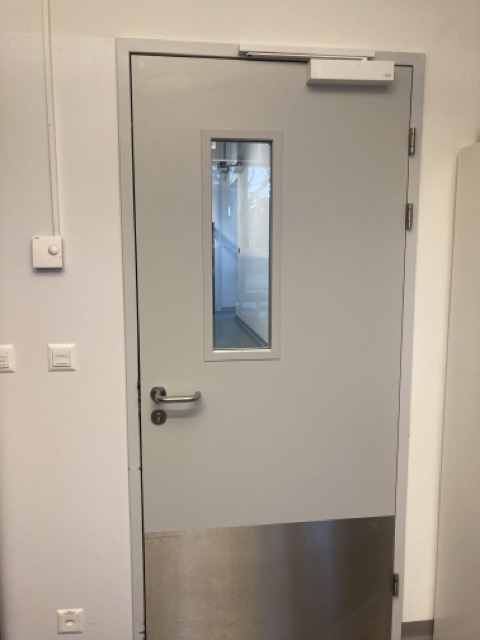 Porte avec vitrage de 20 x70 cm VDP : 85 cm Épaisseur cadre int: 4 cm Avec ferme-Porte Dorma