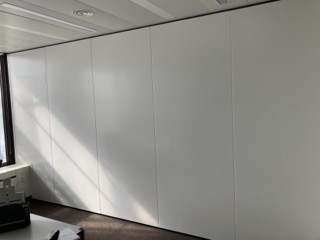 Cloisons Clestra PleinAir – vitrées avec stores manuels et pleins RAL 9010