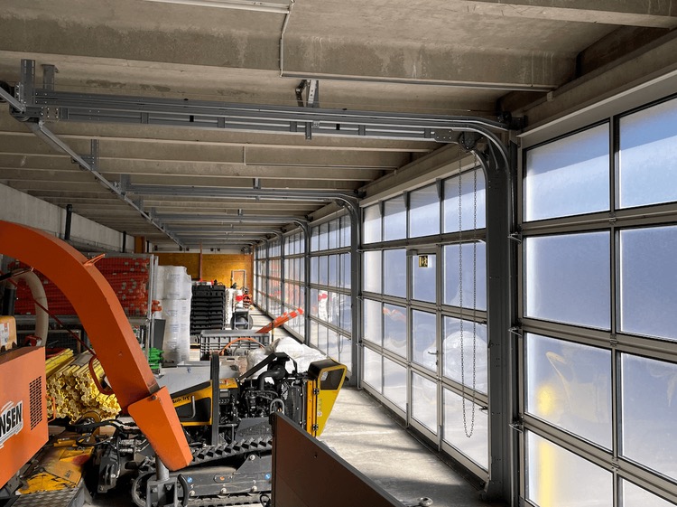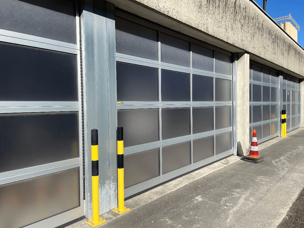 Porte de garage industrielle, armature alu, mécanisme manuel, 35 pc dont 18 pc sans porte de service et 17 pc avec portes de service - Industrielles