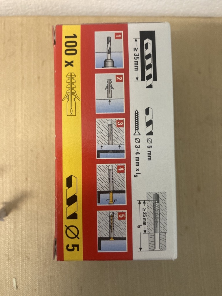 1 = une boite chevilles Fischer plastiques 5mm