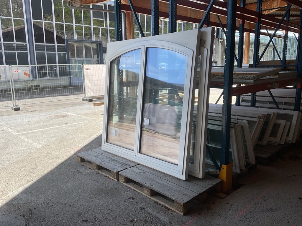 Baie vitrée Egokiefer bois/alu WS/1 cadre bois plein - état neuf (erreur de commande). Sommet vouté. Ouverture simple et oscilo-batante Peut venir en lot de 2, la seconde baie vitrée mesure 118,5 cm de large
