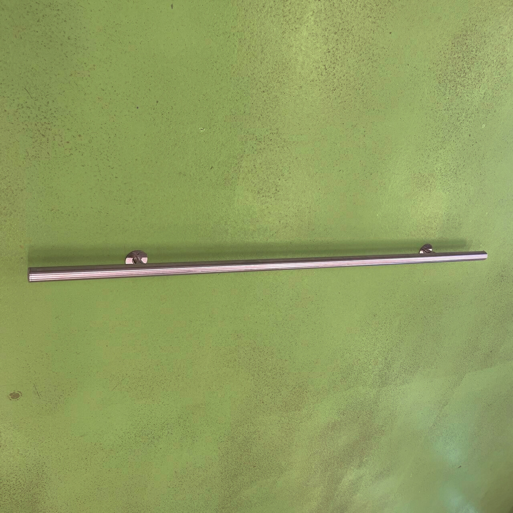 Main courante en acier inoxydable avec supports. Longueur: 1530 mm Ø 33 mm Éléments issues du démontage d'un bureau à Genève.