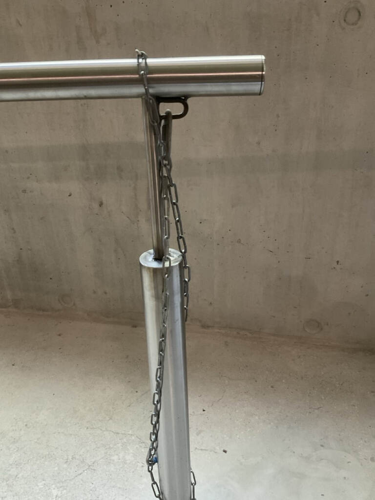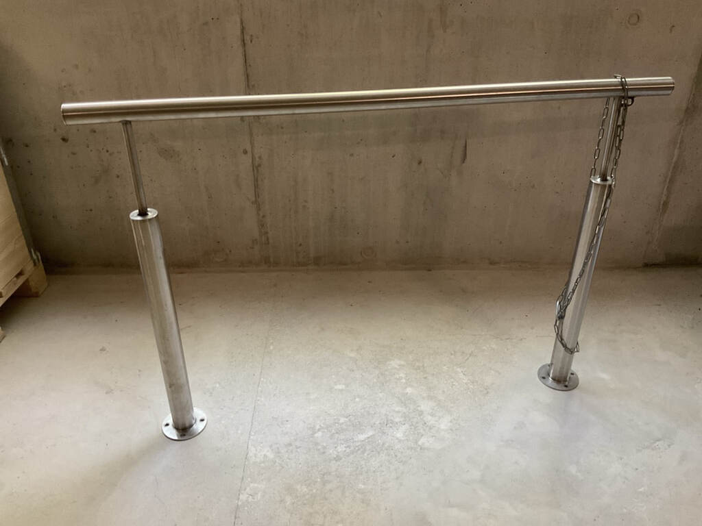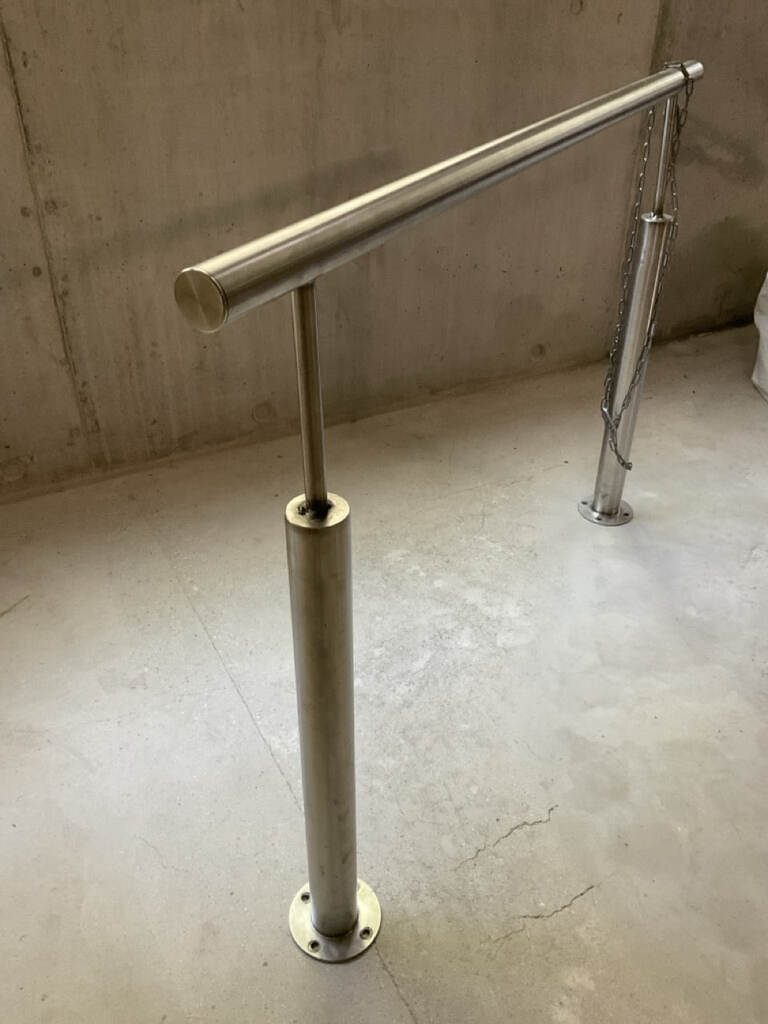 Garde-corps en acier inox pouvant être fixés au sol. Ces éléments proviennent d'un hôtel de luxe de Genève.